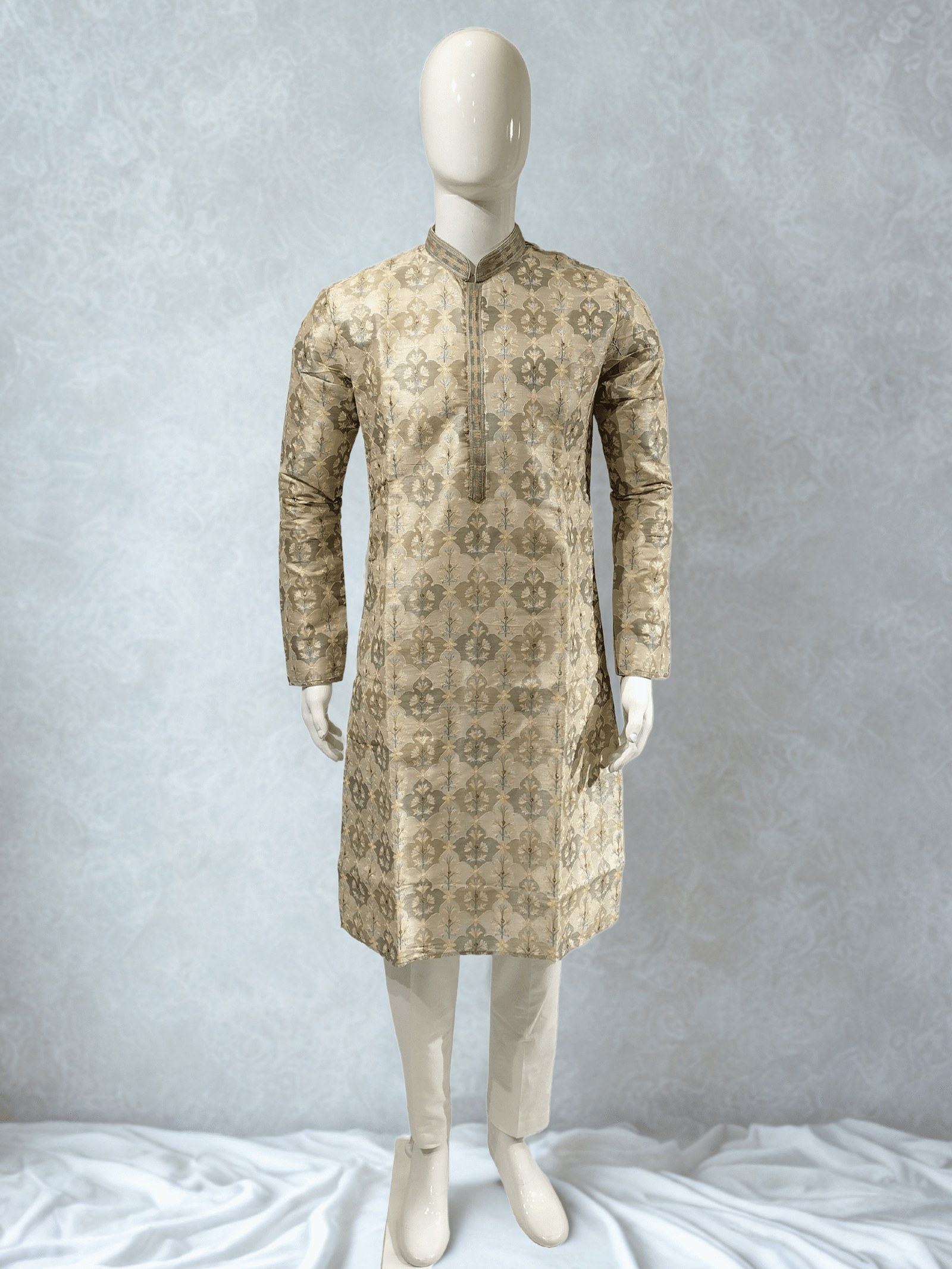 Men’s Ivory Floral Embroidered Indo-Western Sherwani Set A luxurious floral embroidered Indo-Western sherwani, blending tradition with contemporary elegance. Perfect for weddings, receptions, and grand celebrations.